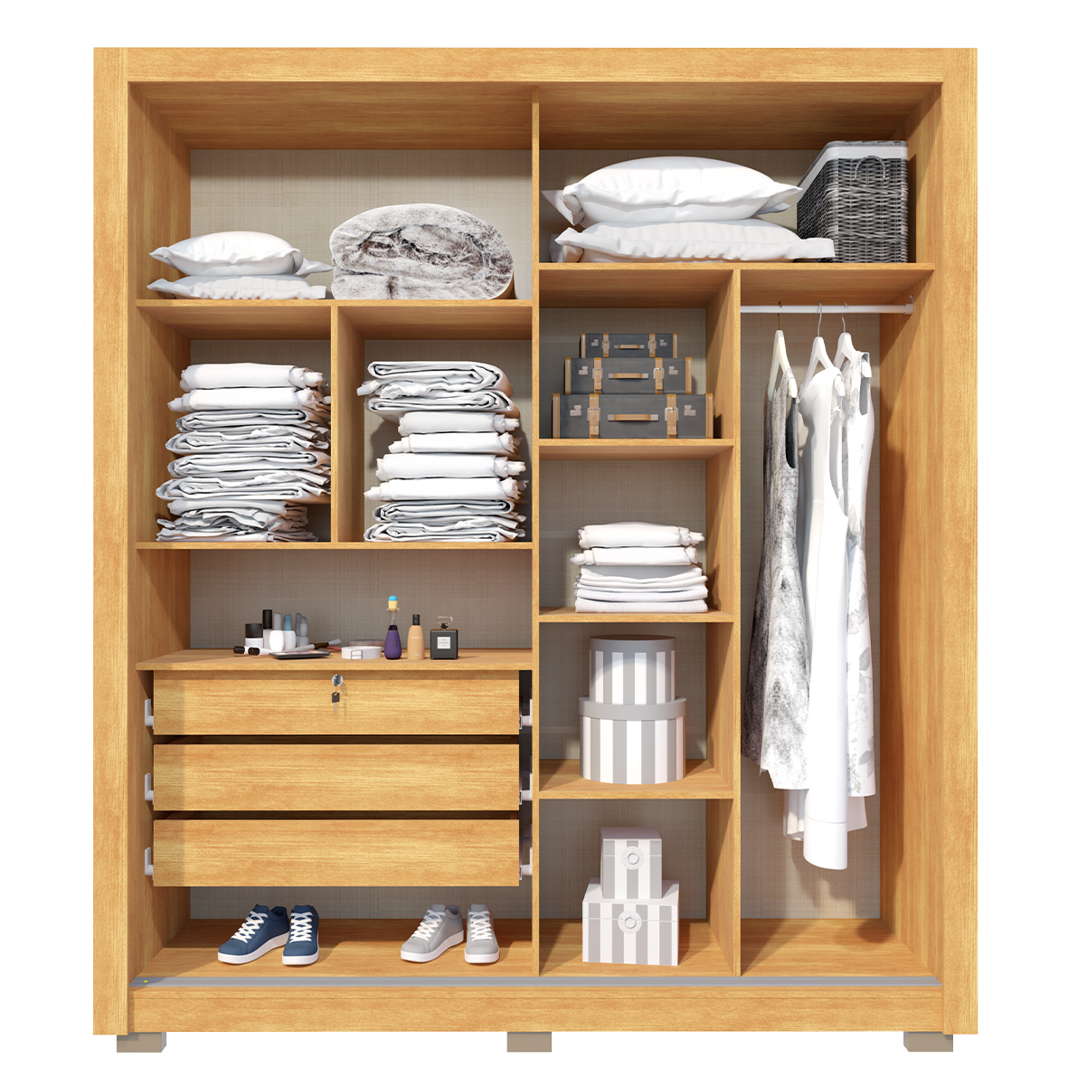 espaço e manter suas roupas organizadas. Com duas portas de correr, ele oferece