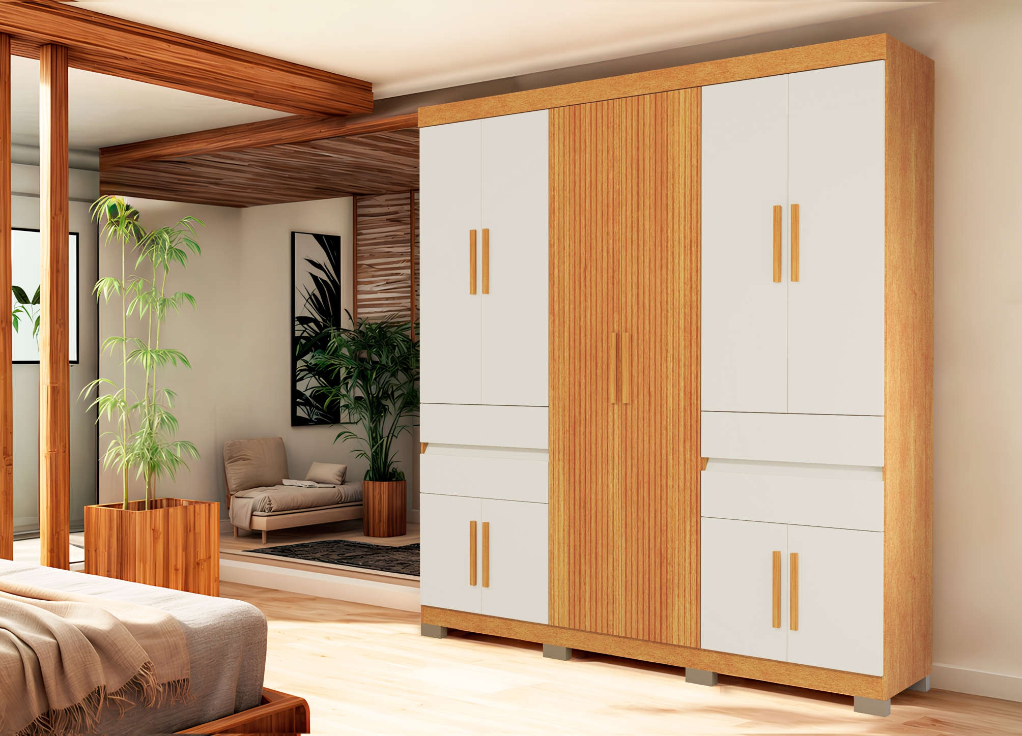 Roupeiro Nevada 23 é a escolha perfeita para quem valoriza um design contemporâneo sem sacrificar a funcionalidade. Com suas 10 portas e 4 gavetas externas, ele oferece uma solução de armazenamento ampla e acessível, permitindo que você organize suas roupas e acessórios com facilidade. A durabilidade é garantida pela sua construção robusta e a combinação de cores elegantes, assegurando que o roupeiro seja não apenas um elemento prático, mas também um destaque estético no seu quarto. Invista na renovação do seu espaço com o Roupeiro Nevada 23 e desfrute de um ambiente mais organizado e versátil.